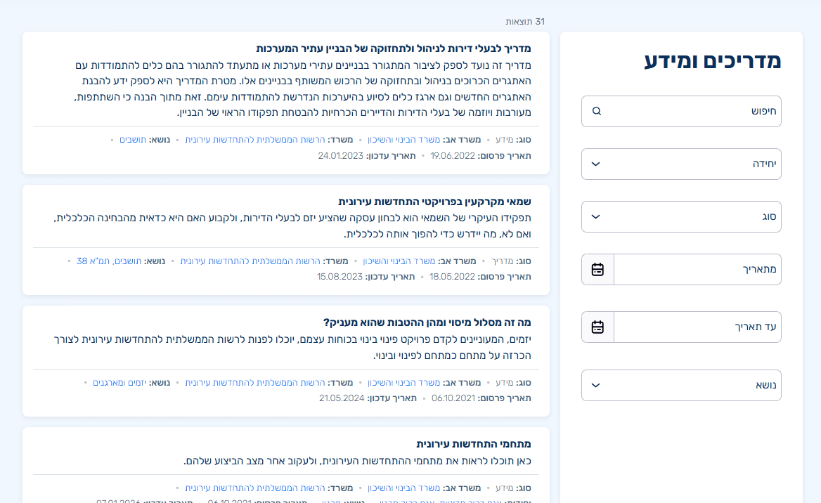 This project focused on restructuring the information architecture and navigation of the Israeli Authority for Urban Renewal website, within the constraints of the Israeli government design system.